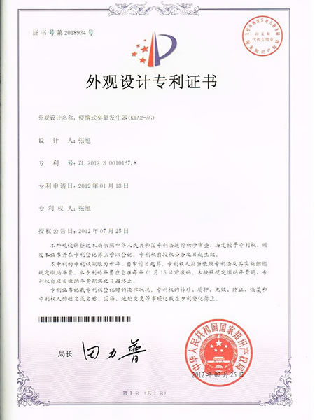2012: Компания получила 6 национальных патентов, один из которых за третье поколение портативных озоновых генераторов.